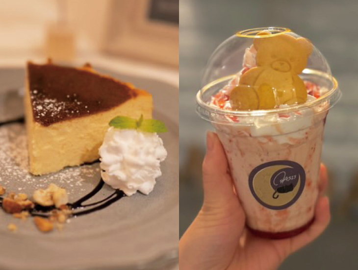 「けんしん郡山文化センター」そば、人気NO.1「バスクチーズケーキ」600円をはじめとした自家製スイーツと、氷を一切使わない濃厚で甘みたっぷりの自家製シェイク(550円〜)、軽食類をそろえた「cafe OASIS」(郡山市堂前RHINOS堂前ビル1F)。営業は11時〜17時。定休は日曜、月曜、火曜。10月下旬から金・土曜は、スイーツに合うフルーツカクテル、フードも揃えた夜カフェ(18時〜LO23時)もスタート。