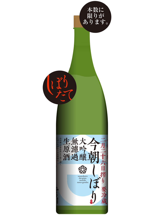 第二弾「今朝しぼり 大吟醸無濾過生原酒」は、2月19日(木)正午予約締切、2月26日(木)お渡し