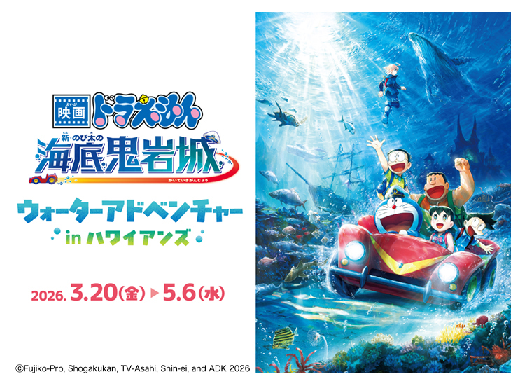 子供から大人まで楽しめる常夏の楽園「スパリゾートハワイアンズ」では、3月20日(金・祝)から5月6日(水・祝)まで春休みイベント「映画ドラえもん 新・のび太の海底鬼岩城」ウォーターアドベンチャーinハワイアンズを開催(参加料無料、別途スパリゾートハワイアンズ入場料が必要)。子供が楽しめるアクティビティが盛りだくさん!春休み&ゴールデンウィークは家族みんなで、水遊びをおもいっきり楽しもう。