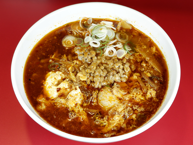 朝ラーと名物味噌担々麺で知られる郡山市島「ばんかい」に、写真の「納豆辛卵タンタンメン」(1,100円)と「辛卵タンタンメン」(1,000円)の旨辛系メニューが新登場。2種類の自家製ラー油の重なりが生む奥深い辛さと醤油ダレを効かせたスープに、溶き卵をやさしくそよがせた一杯。辛さをまろやかにし、とろみと旨味が増幅する納豆入りがイチオシ。辛さの中にも旨味があり、ついつい真っ赤なスープを飲み干してしまうはず。定休木曜。<br />