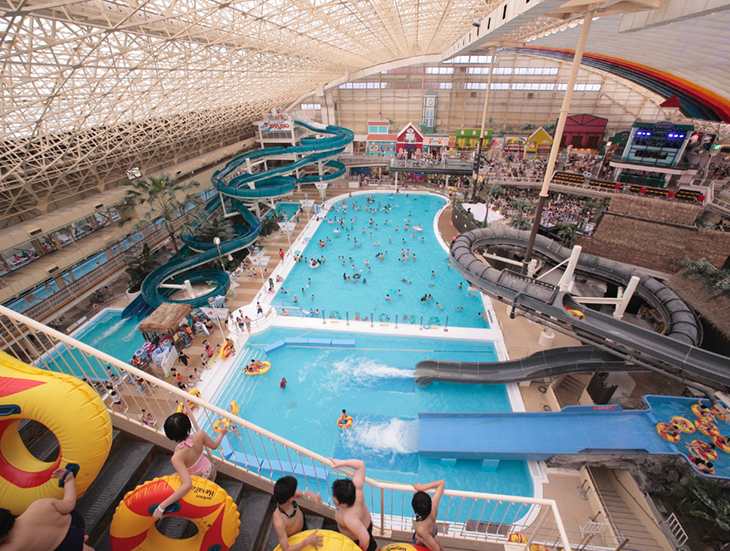 南国ムードあふれる全天候型温泉リゾート