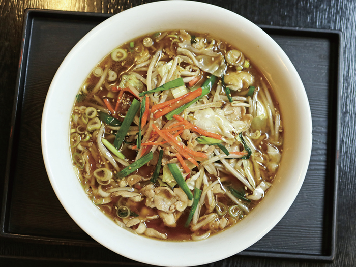 「肉野菜らーめん」は、豚肉、キャベツ、モヤシ、ニンジンなど具だくさん!醤油味のスープで、ボリューム満点。