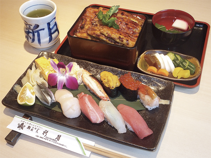 ▲新月特撰おまかせ握り寿司 6,600円、うな重 松 5,500円