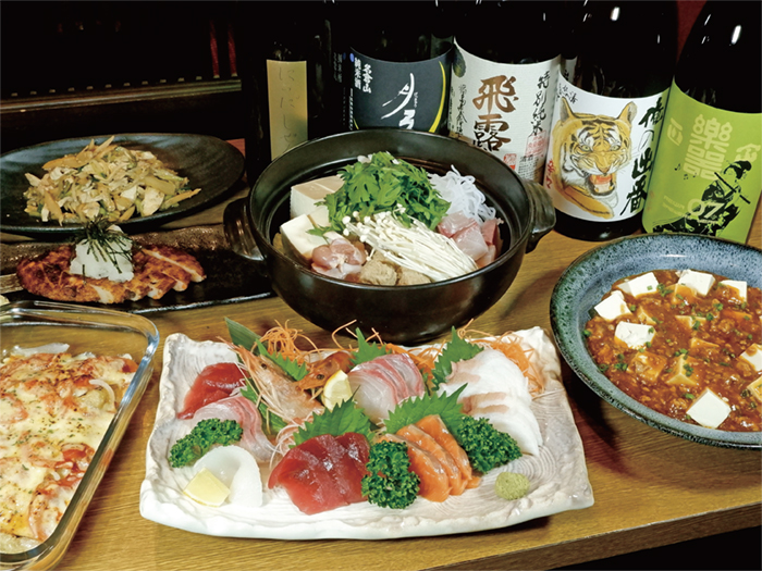 1997年創業、強炭酸ハイボールをはじめ、銘酒、地酒を取り揃え、名物黒カレーでも知られる居酒屋「花月」。忘新年会は「刺身」「鍋」といった店自慢の料理と豊富なお酒で乾杯。