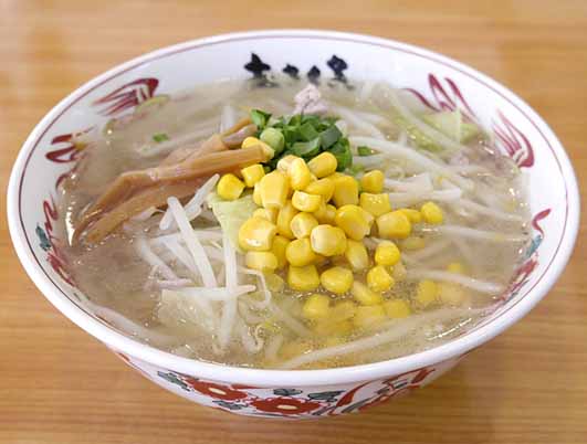 ミネラル分豊富な沖縄天然塩と丸鶏をぜいたくに使ったスープを合わせ、カドが無い、すっきりまろやかな味わいに根強いファンが多い「しおらーメン」。甘みがプラスされるバターとコーンのトッピングがあさくさファンの定番で「みそ」や「しょうゆ」に比べてカロリーも控えめ。